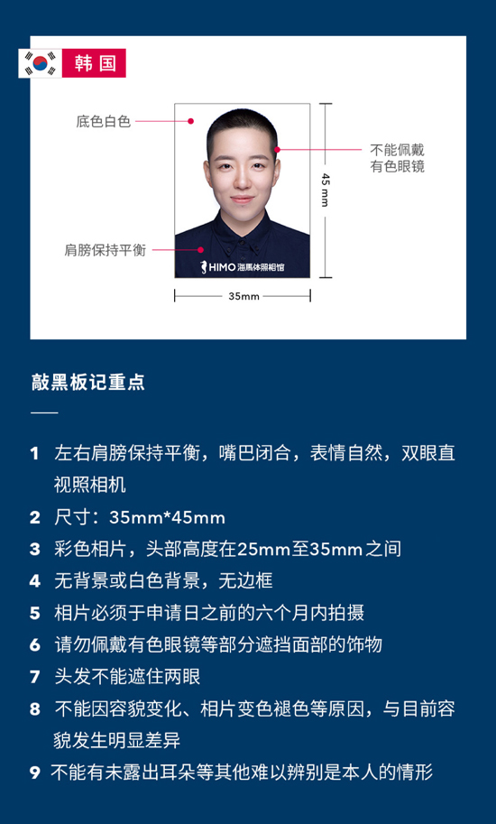 2、规格:35mmX45mm 长方形 白色背景 五官端正清晰,眼睛睁开 不能佩戴眼镜、配饰等